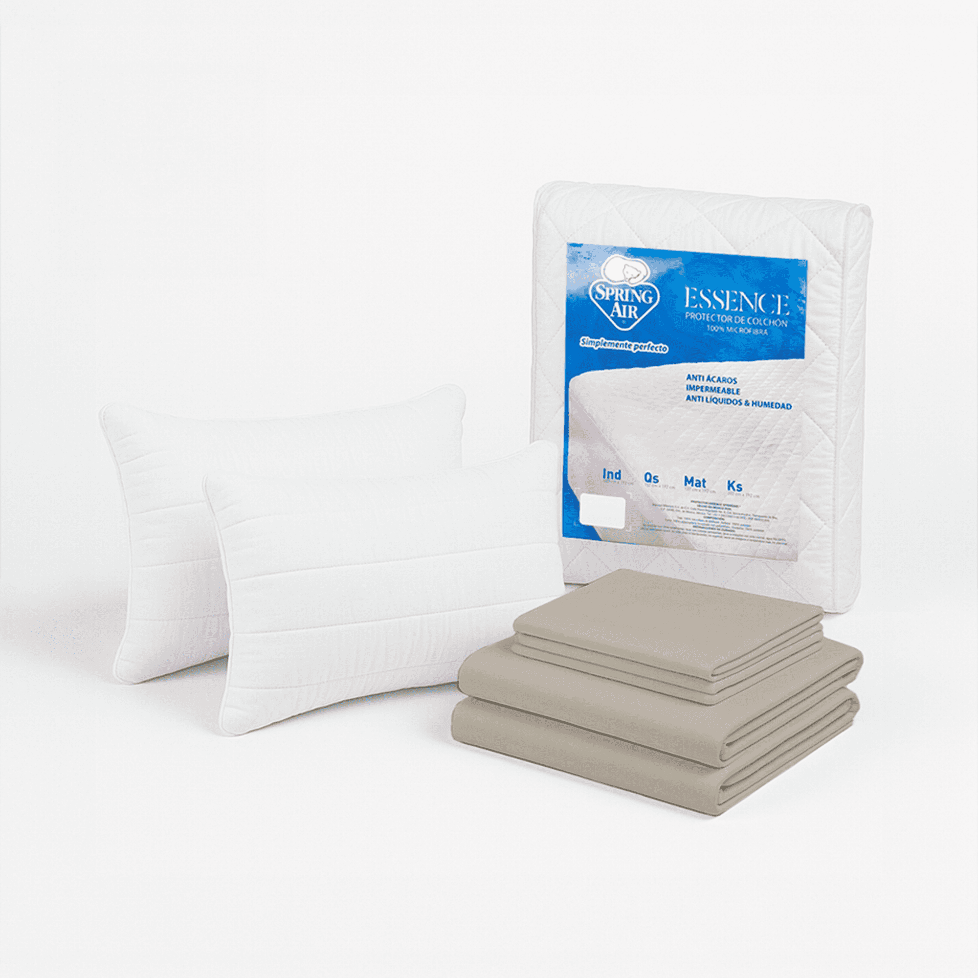 Kit de descanso spring air 2 almohadas peach + protector de colchón + sábanas , kit suave y fresco.$1,139