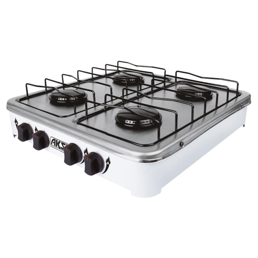 Parrilla Estufa De Mesa Aksi 4 Quemadores Blanco Acero Inoxidable