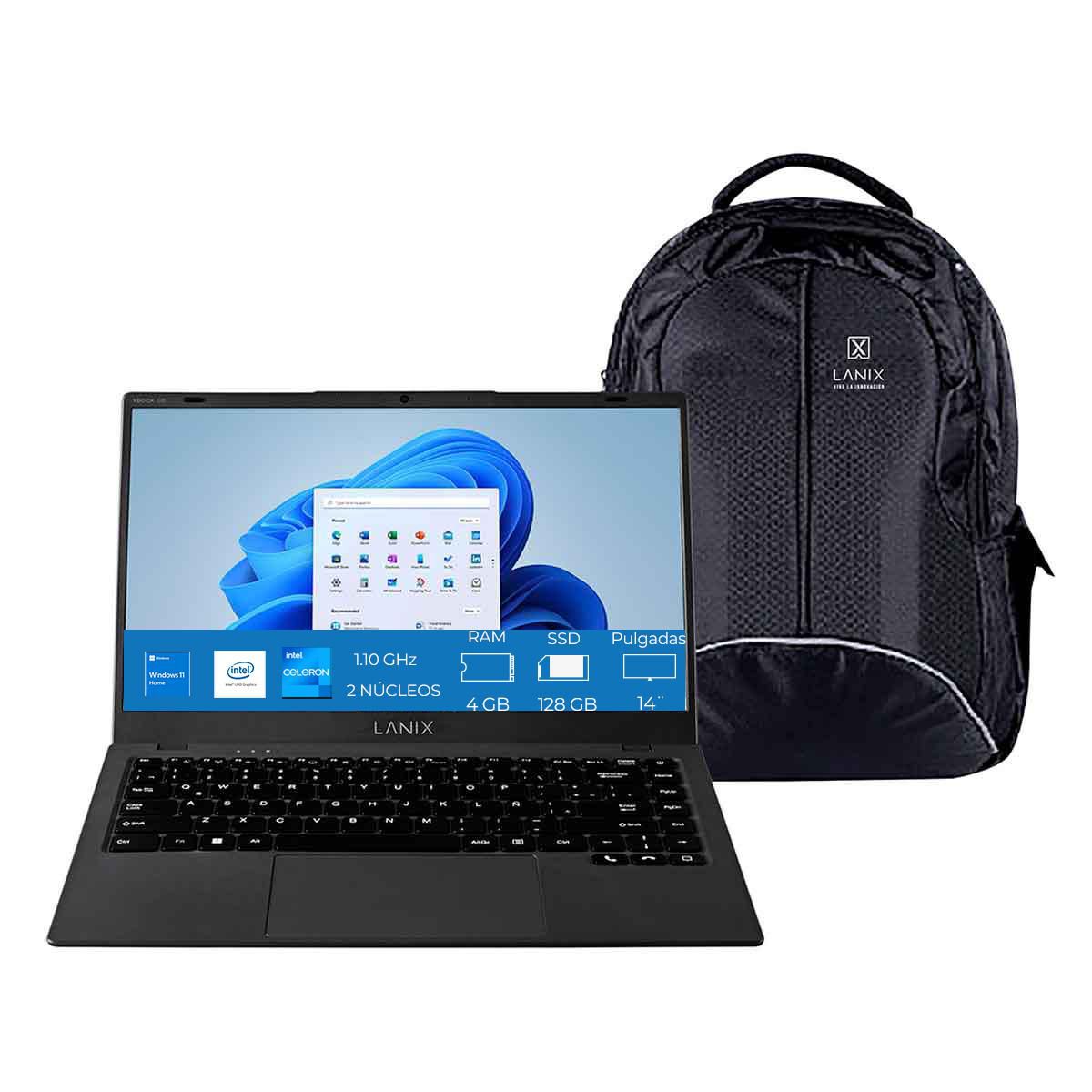 Laptop Lanix Intel Celeron N4020 RAM 4GB Memoria Interna 128 GB Xbook Go + Backpack$3,995