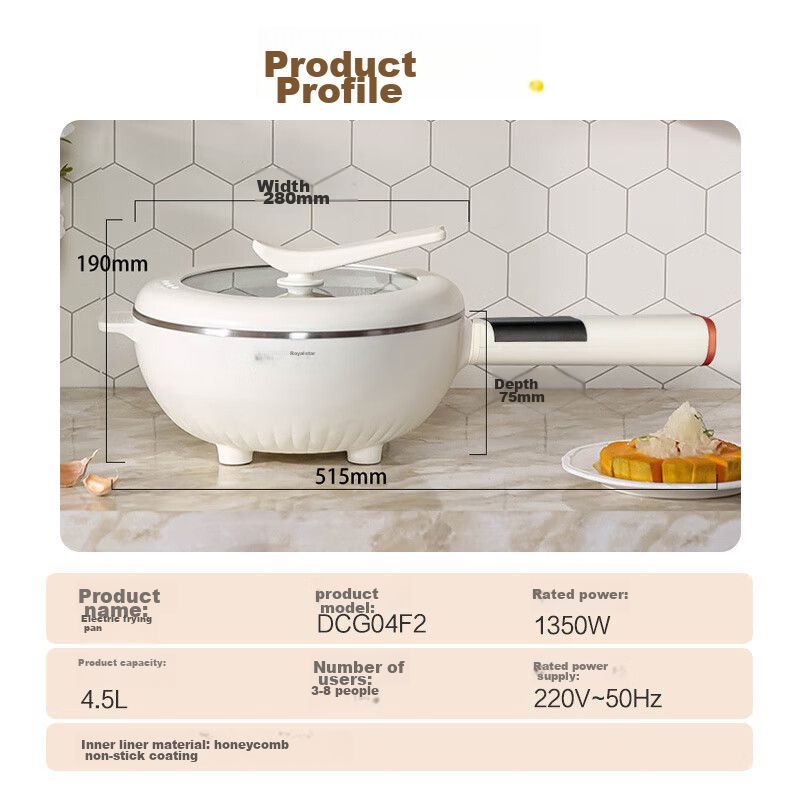 Wok eléctrico Royalstar DCG04F2 4.5L antiadherente panal titanio multifuncional$2,879