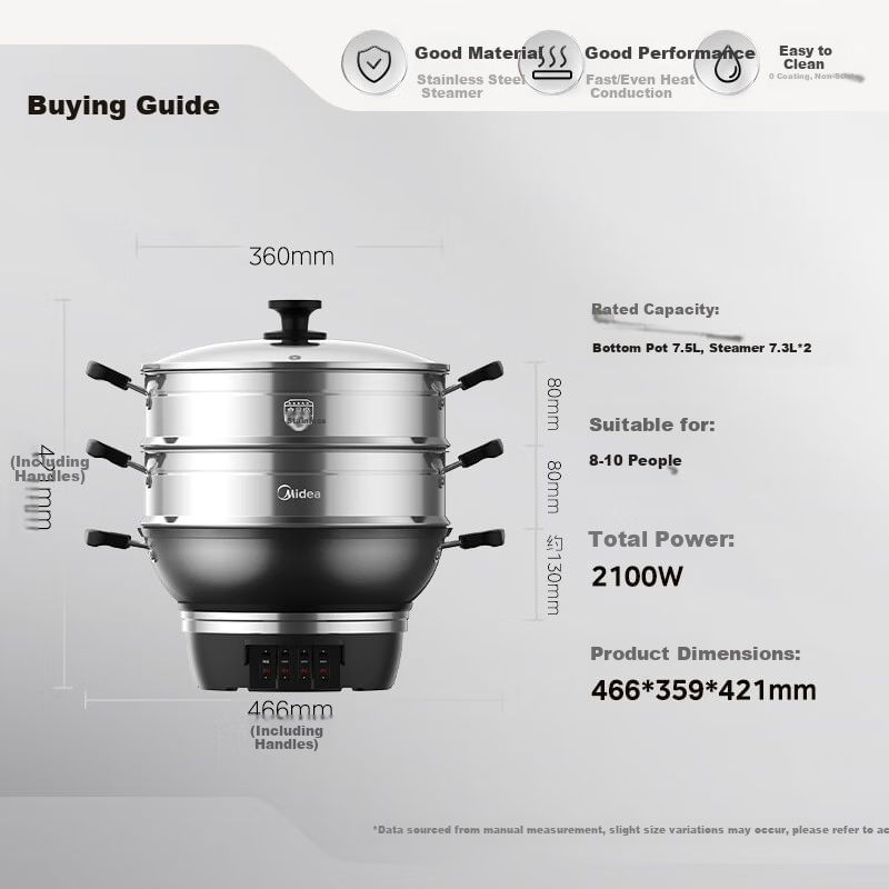 Olla Vaporera Eléctrica Midea ZGC36T02 22.1L Acero Inoxidable Hierro Fundido$6,899