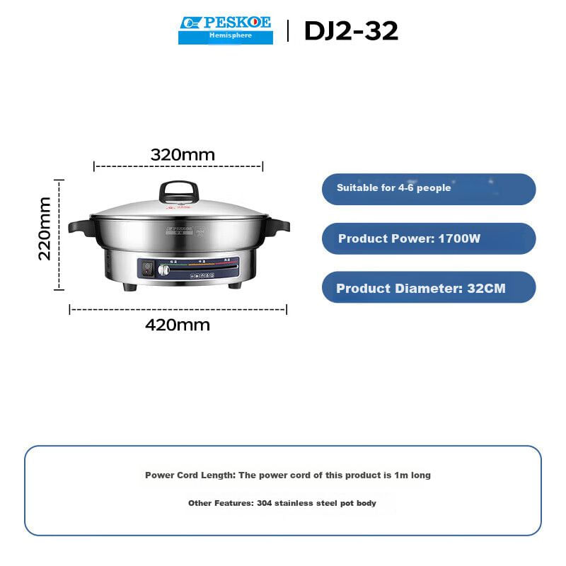 Plancha eléctrica PESKOE DJ2-32 32 cm acero inoxidable 304 antiadherente$3,579