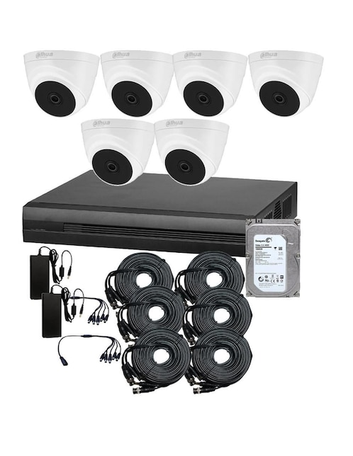 Kit 6 cámaras de seguridad Dahua Technolgy alámbrica full HD 104° con capcidad para grabar y visión nocturna compatible con Dahua para interior y exterior