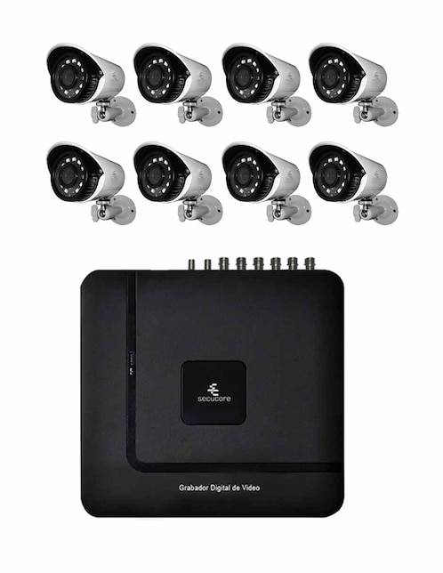 Kit 8 cámaras de seguridad Secucore alámbrica 4K/UHD 80° con capacidad de grabar y visión nocturna compatible con AHD, CVI,TVI, XVI, análogas e IP para interior y exterior